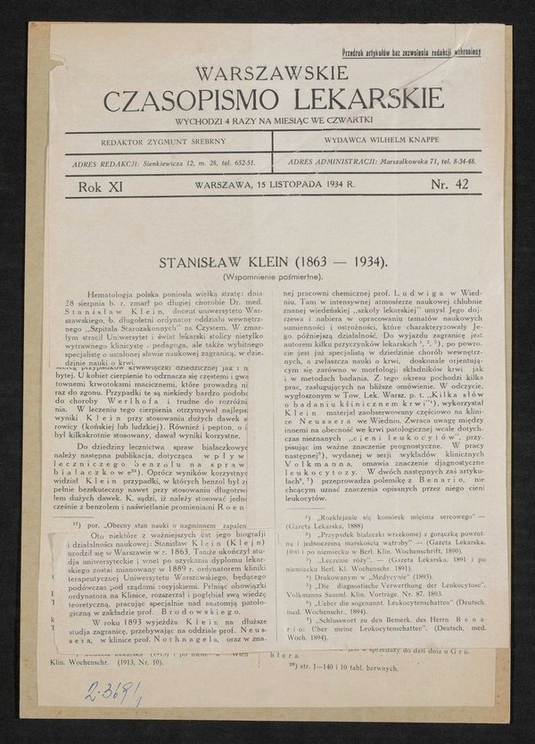 Warszawskie Czasopismo Lekarskie, Wochenmagazin, Warschau
