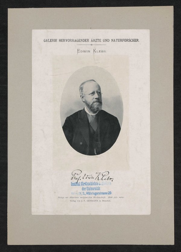 Auszug aus: Galerie hervorragender Ärzte und Naturforscher, in: Beilage zur Münchener medizinischen Wochenschrift, 1914, Bl. 337. Vorderseitig mit einem Stempel des Instituts für Geschichte der Medizin, Wien, versehen.