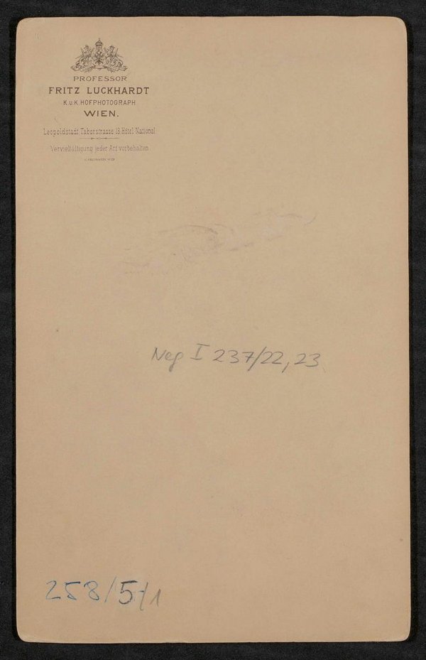 Die Fotografie wurde von Fritz Luckhardt, k.u.k. Hofphotograph, Wien, angefertigt. Neg I 237/22, 23
