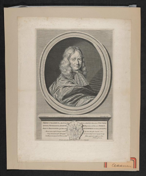 Der Kupferstich wurde von Abraham Blooteling nach einer Zeichnung von Jacob Toornvliet angefertigt und von Pieter van der Aa gedruckt.