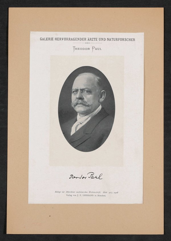 Auszug aus: Galerie hervorragender Ärzte und Naturforscher, in: Beilage zur Münchener medizinischen Wochenschrift, Bl. 423, 1928. Das Bild wurde von Julius Friedrich Lehmann verlegt.