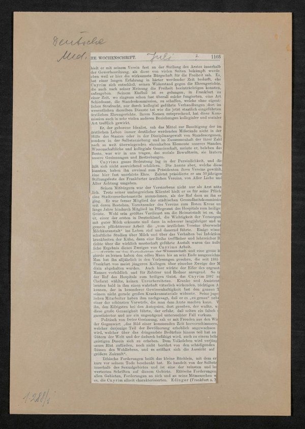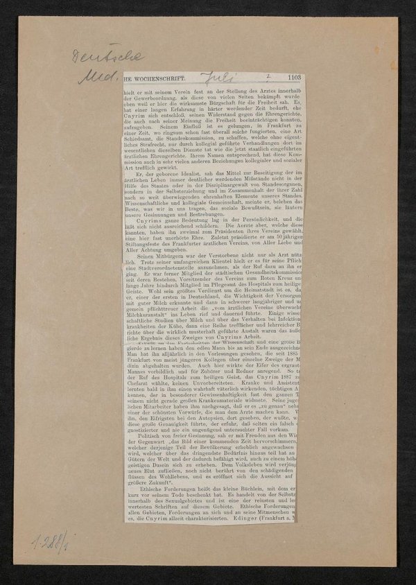 Bild und Nachruf stammen aus: Deutsche Medizinische Wochenschrift, Bd. 30, 1904, Nr. 30, S. 1103.