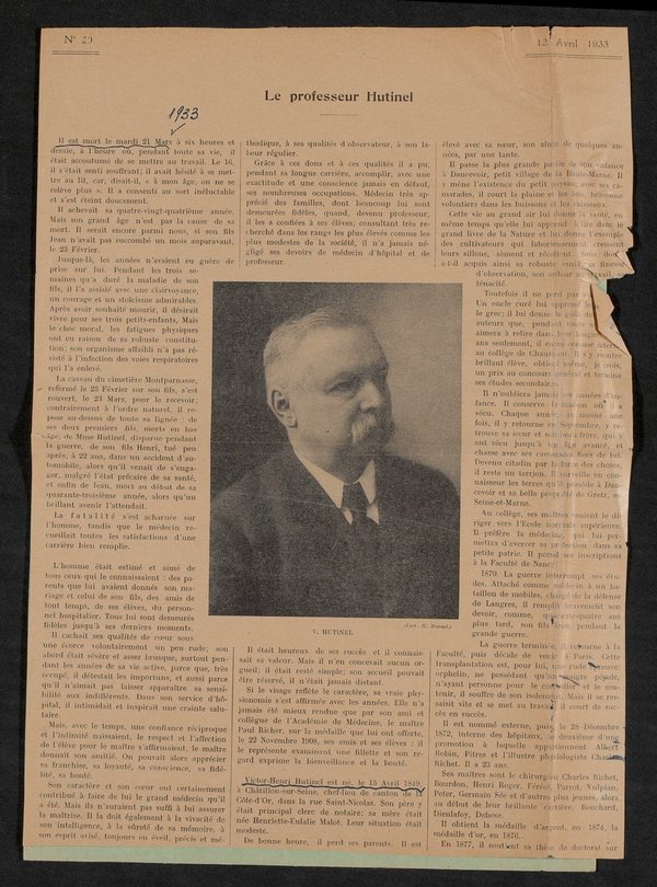 Bild und Bericht sind der französischsprachigen Fachzeitschrift La Presse Medicale, Nr. 29, 12. April 1933, S. 595 f., entnommen worden. Die als Vorlage dienende Fotografie stammte von Henri Manuel.