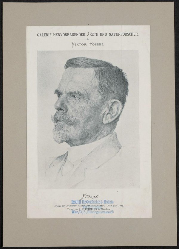 Auszug aus: Galerie hervorragender Ärzte und Naturforscher, in: Beilage zur Münchener medizinischen Wochenschrift, 1913, Bl. 329. Unter dem Bild befindet sich ein Stempel des Institutes für Geschichte der Medizin, Wien.