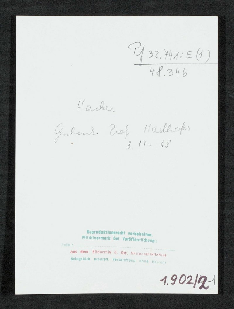 Das Original aus der Zeit um 1912 wurde von Carl Pietzner, Graz, angefertigt. Zum Zeitpunkt der Anfertigung der Kopie befand sich die Vorlage im Bildarchiv der Österreichischen Nationalbibliothek, Wien.