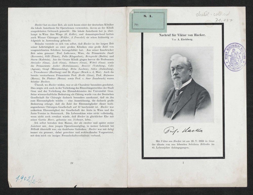 Die als Vorlage dienende Fotografie wurde von Carl Pietzner, Graz, angefertigt. Auf der Vorderseite befindet sich ein Stempel der Bibliothek der Gesellschaft der Ärzte, Wien.