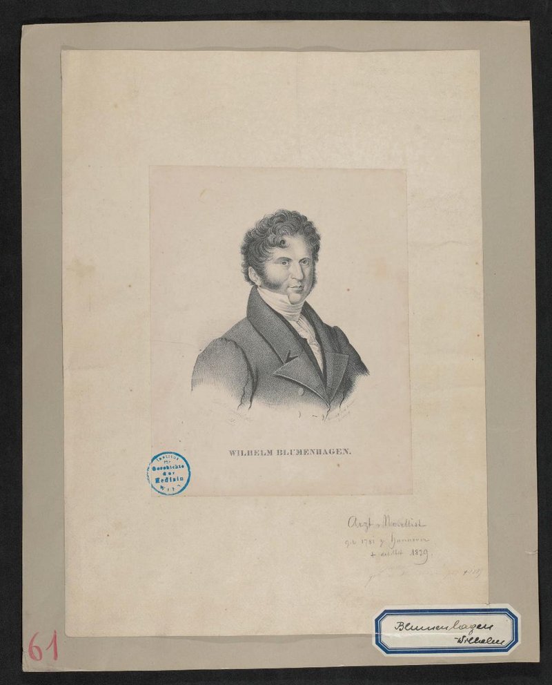Die Lithografie wurde von August Kneisel, Leipzig, nach einer Zeichnung von Cäcilie Brand angefertigt. Vorderseitig befindet sich ein Stempel des Institutes für Geschichte der Medizin, Wien.
