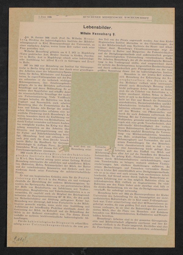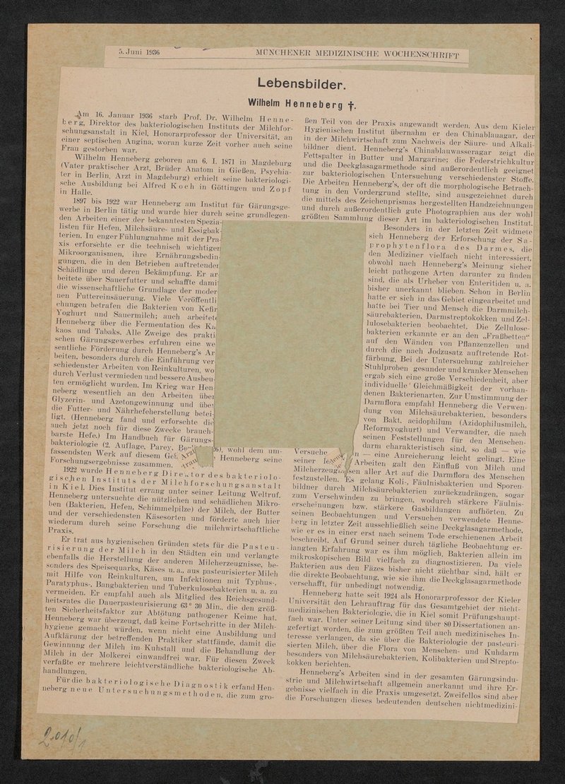 Auszug aus: Münchener medizinischen Wochenschrift, 5. Juni 1936, S. 941.