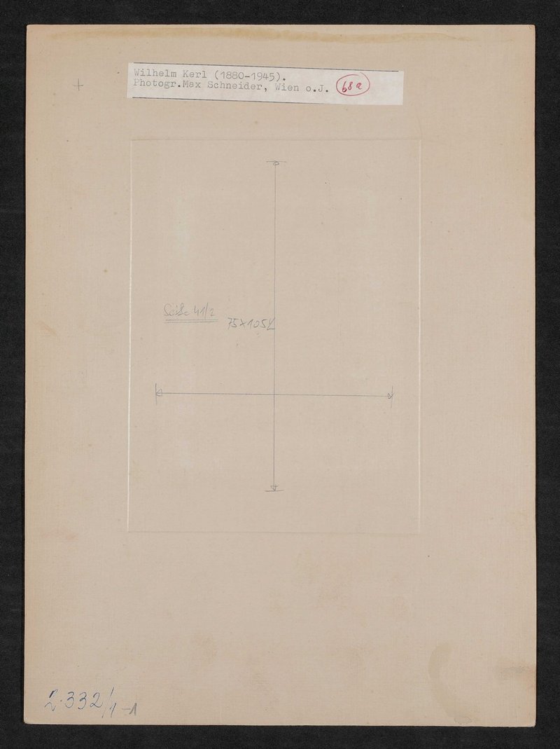 Die Fotografie ist von Max Schneider, Wien, angefertigt worden. Mit Anmerkungen auf der Rückseite, die auf die Nutzung für eine Drucklegung hindeuten.