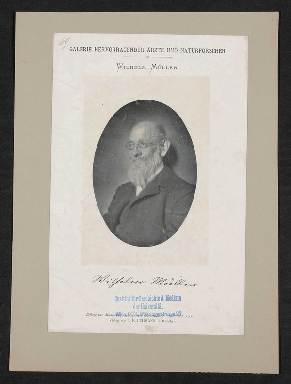 Auszug aus: Galerie hervorragender Ärzte und Naturforscher, in: Beilage zur Münchener medizinischen Wochenschrift, 1909, Bl. 253. Das Bild wurde von Julius Friedrich Lehmann verlegt.