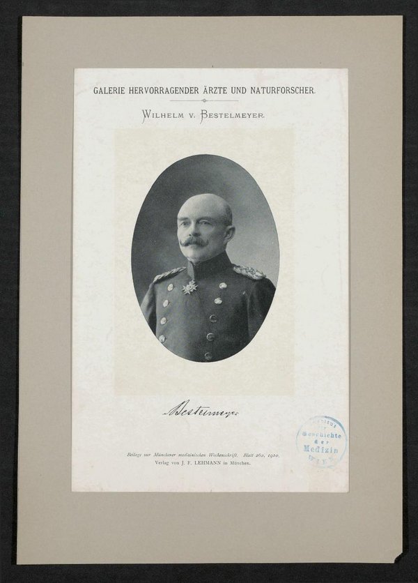 Auszug aus: Galerie hervorragender Ärzte und Naturforscher, in: Beilage zur Münchener medizinischen Wochenschrift, 1910, Bl. 262. Unter dem Bild befindet sich ein Stempel des Institutes für Geschichte der Medizin, Wien.