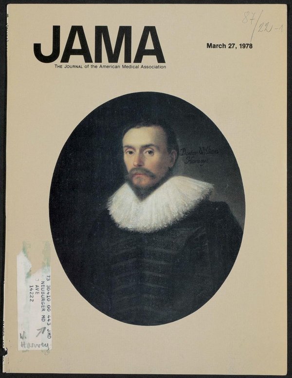 Porträt von William Harvey aus dem Jahr 1627, in der National Portrait Gallery. Abbildung im Journal of the American Medical Association, vom 27. März 1978.