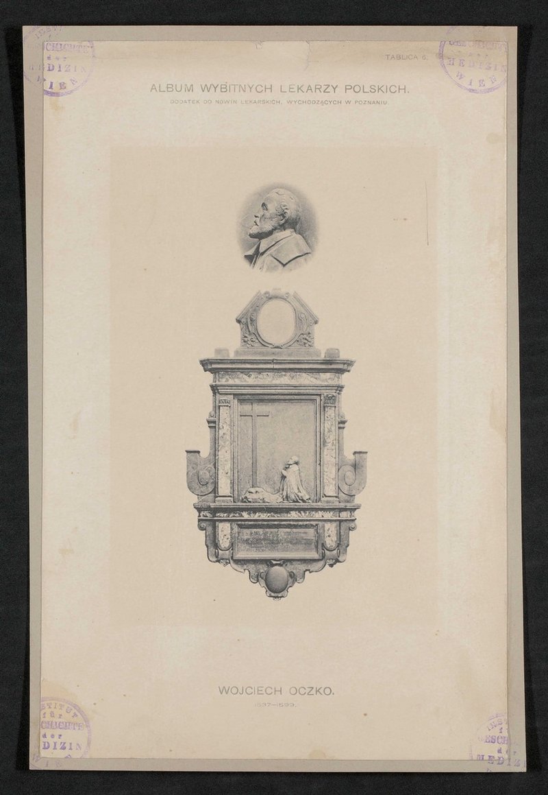 Auszug aus: Album Wybitnych Lekarzy Polskich. Dodatek do nowin lekarskich, wychodzacych w poznaniu. Tablica 6. Vorderseitig mit vier Stempeln des Institutes für Geschichte der Medizin, Wien, versehen.