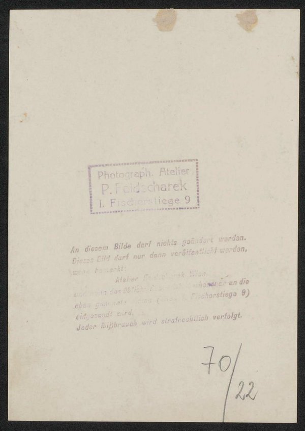 Die Fotografie wurde vom Photographischen Atelier Pepa Feldscharek aufgenommen und war ein Geschenk des Rudolfspitals im Jahr 1979.
