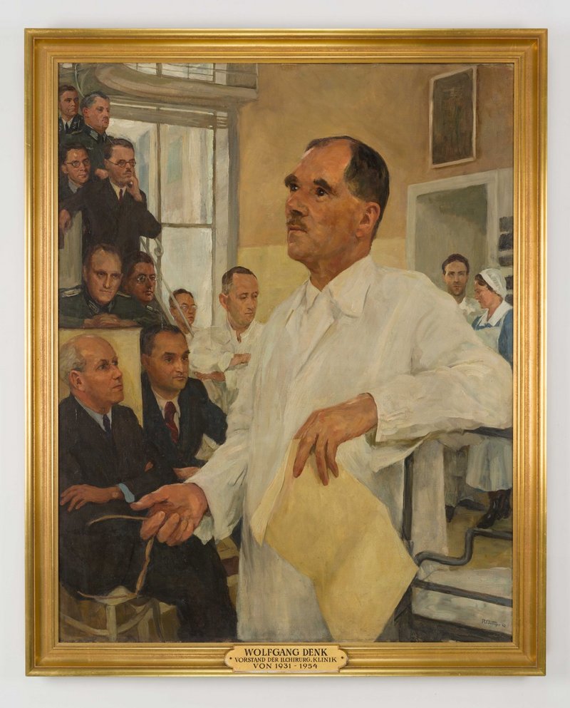 Das Gemälde ist von Rudolg Böttger angefertigt worden. Im Hintergrund des Gemäldes ist ein Bild mit einer Person in brauner Uniform, vermutlich Adolf Hitler, zu sehen. Digitalisat von Reiner Riedler.