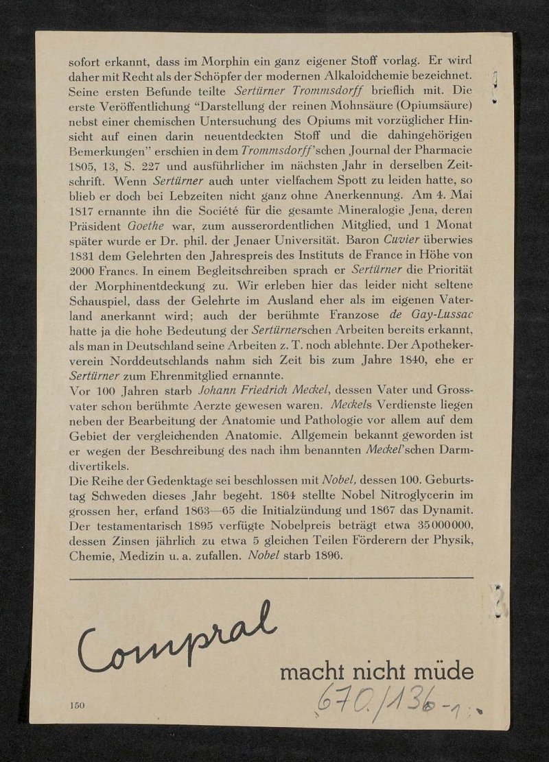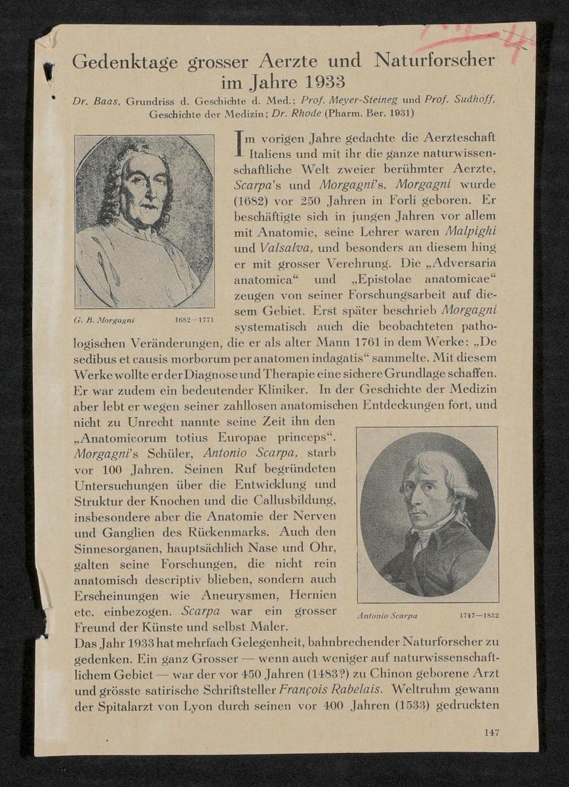 Auszug aus: Gedenktage großer Ärzte und Naturforscher im Jahre 1933, in: Therapeutische Berichte, Nr. 10, S. 147-150.