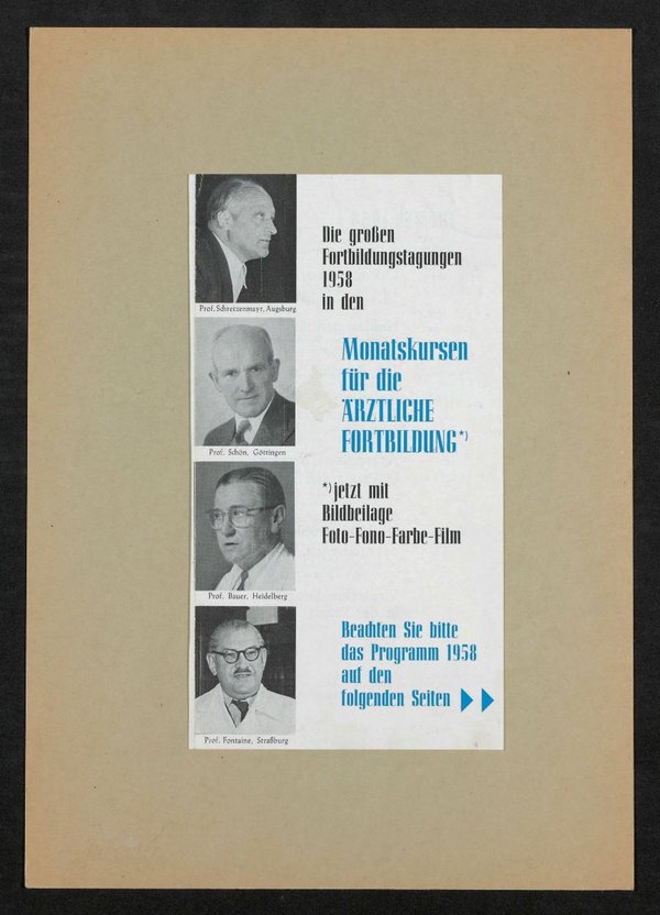 Auszug aus einer Broschüre zu den Monatskursen für die ärztliche Fortbildung, 1958.