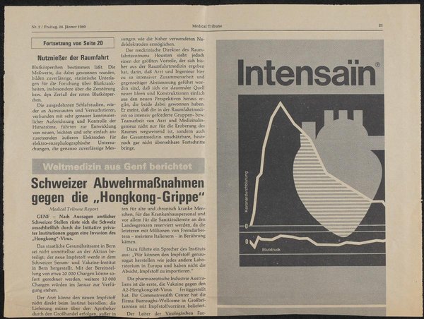 Zeitungsausschnitt aus der Medical Tribune vom 24. Jänner 1969.