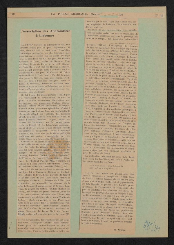 Auszug aus: La Presse Médicale, Nr. 43, 1933.