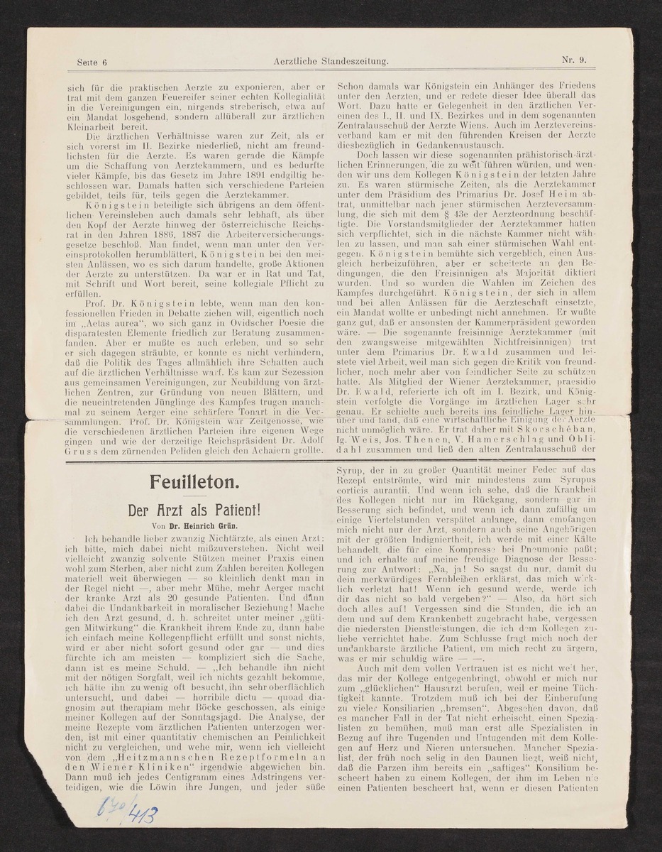 Ärztliche Standeszeitung. Organ für die wirtschaftlichen Interessen des ärztlichen Standes, für soziale und praktische Medizin, hg. von der österreichischen Gesellschaft zur Bekämpfung des Kurpfuschertums