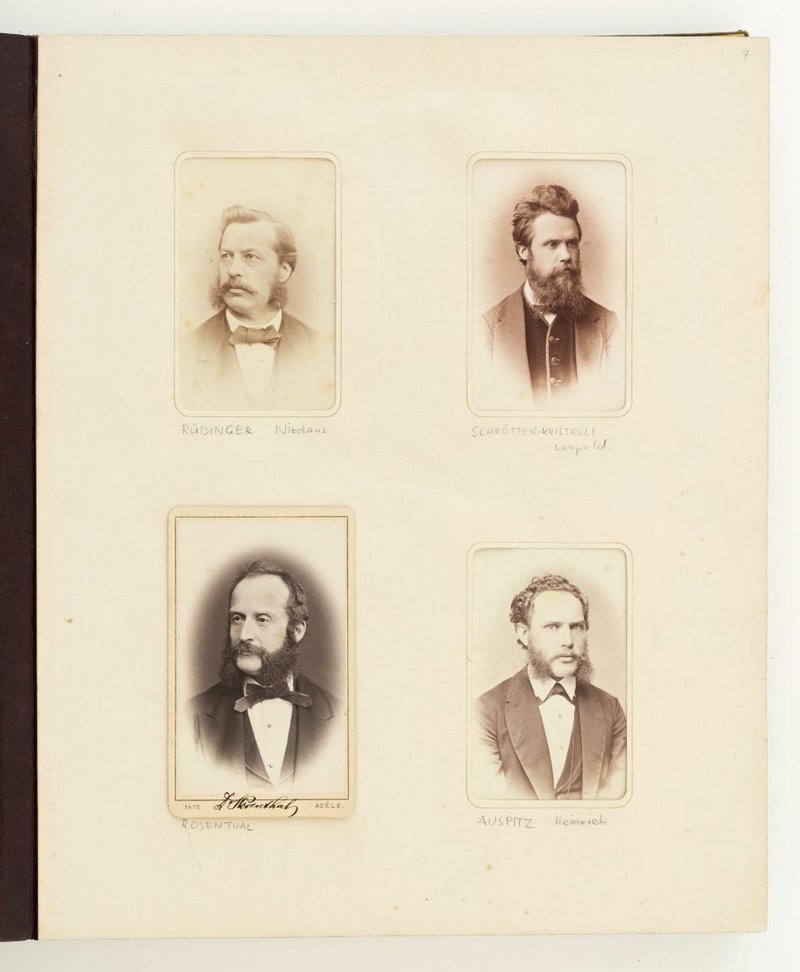 Die Fotografie von Moritz Rosenthal stammt von Adéle, k.k. Hof-Atelier, Wien. Die übrigen Fotograf:innen sind unbekannt. Die Rückseite der einzelnen Fotografien ist nicht einsehbar. Das Digitalisat stammt von Reiner Riedler.