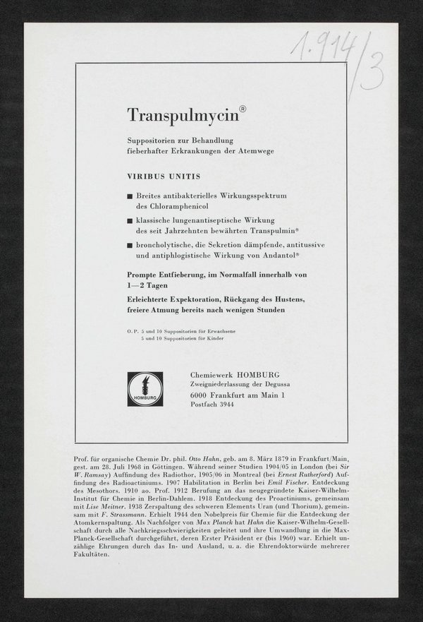 Auszug aus: Galerie hervorragender Ärzte und Naturforscher, in: Beilage zur Münchener medizinischen Wochenschrift, 1968, Bl. 722. Das Bild wurde im Verlag von Julius Friedrich Lehmann unter der Mitwirkung der Chemiewerke Homburg, Frankfurt am Main, herausgegeben. Neg. III. 125/7