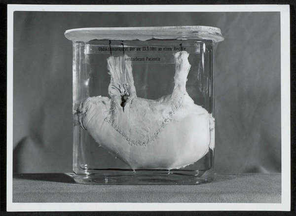 Das Präparat wurde im Pathologisch-anatomischen Museum Wien, dem heutigen Narrenturm, aufbewahrt. Neg (9x12) 1889