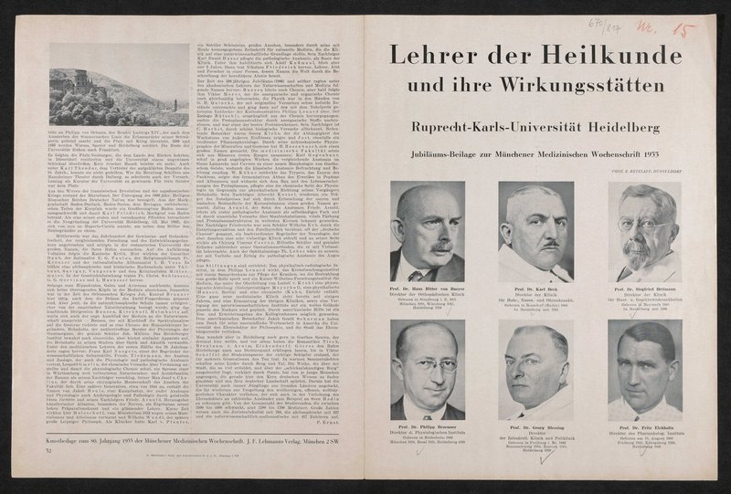 Auszug aus: Jubiläumsbeilage zur Münchener Medizinischen Wochenschrift, 1933.