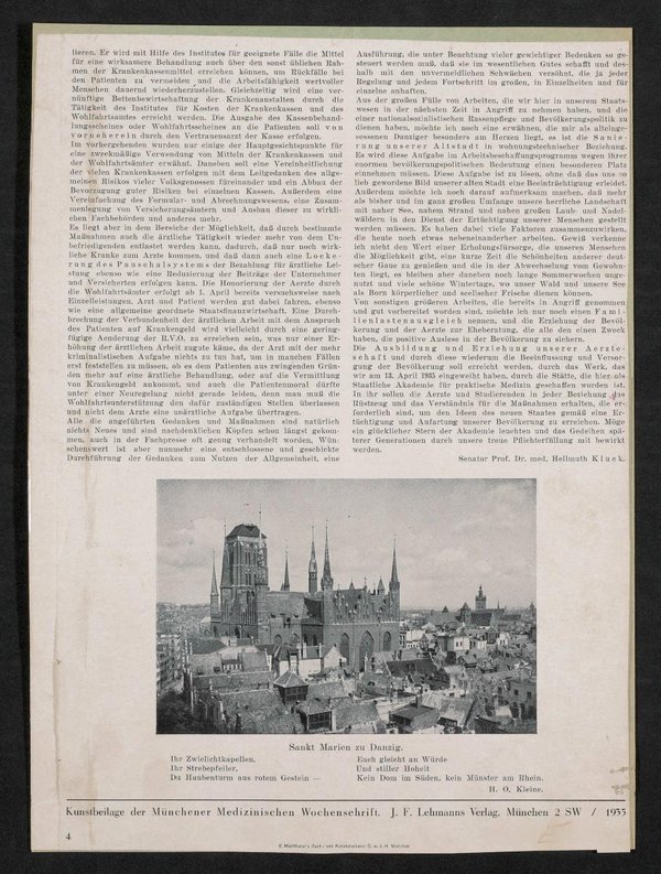 Auszug aus: Jubiläumsbeilage zur Münchener Medizinischen Wochenschrift, 1935.