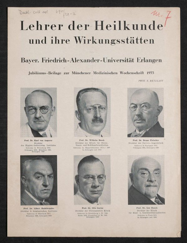 Auszug aus: Jubiläumsbeilage zur Münchener Medizinischen Wochenschrift, 1933.