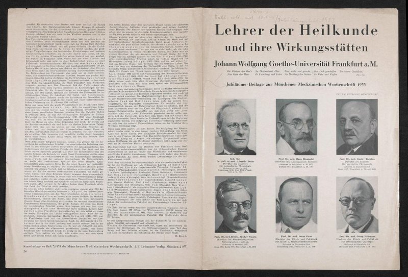 Auszug aus: Jubiläumsbeilage zur Münchener Medizinischen Wochenschrift, 1933.