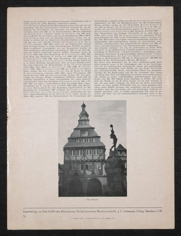 Auszug aus: Jubiläumsbeilage zur Münchener Medizinischen Wochenschrift, 1933.