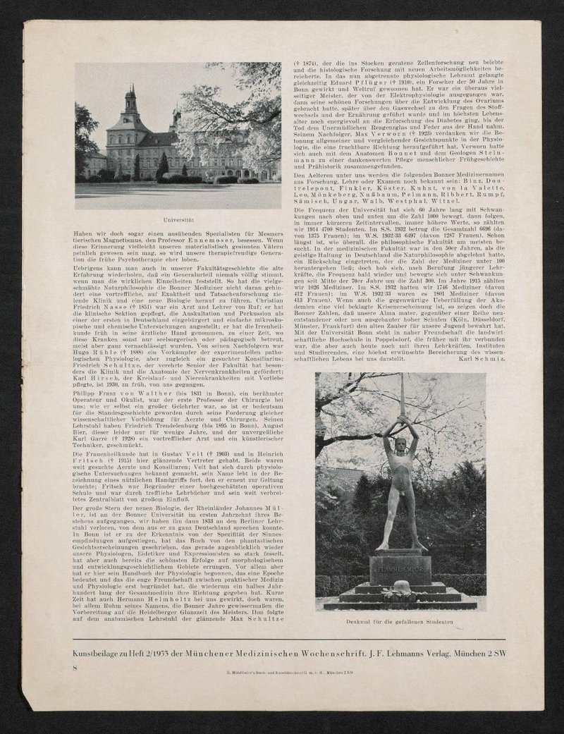 Auszug aus: Jubiläumsbeilage zur Münchener Medizinischen Wochenschrift, 1933.