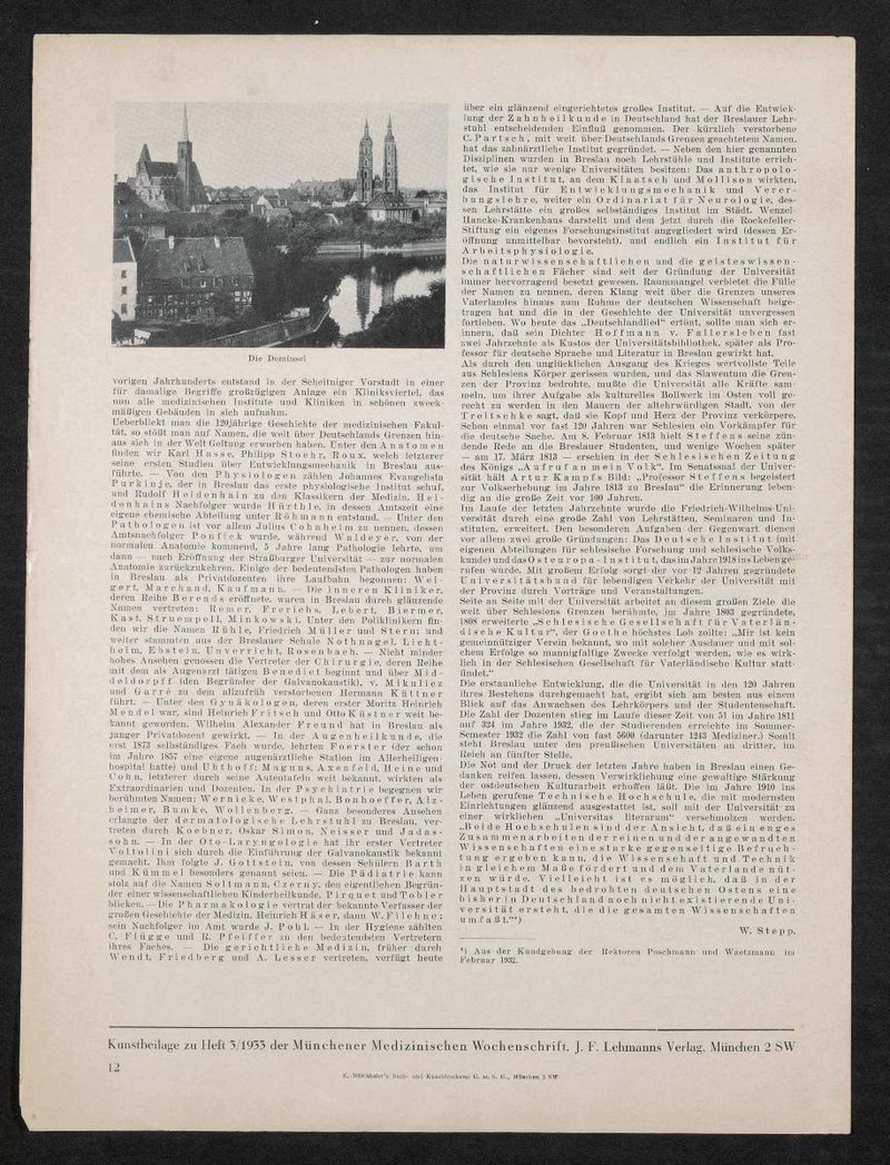 Auszug aus: Jubiläumsbeilage zur Münchener Medizinischen Wochenschrift, 1933.