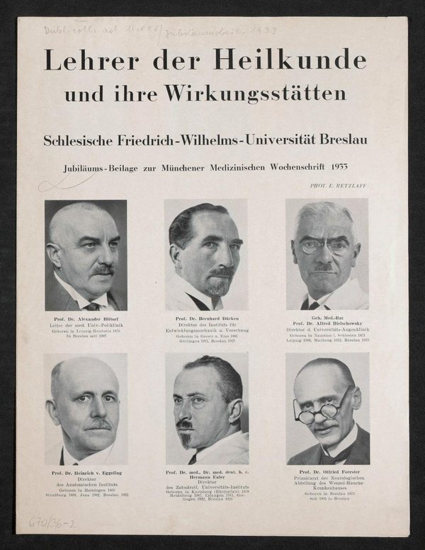 Auszug aus: Jubiläumsbeilage zur Münchener Medizinischen Wochenschrift, 1933.