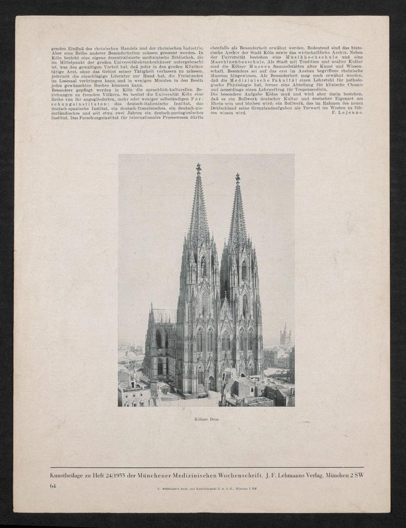 Auszug aus: Jubiläumsbeilage zur Münchener Medizinischen Wochenschrift, 1933.