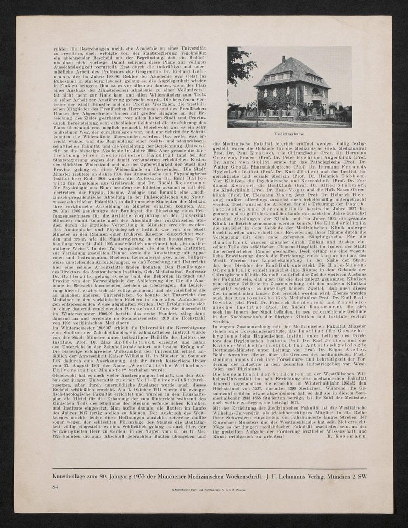 Auszug aus: Jubiläumsbeilage zur Münchener Medizinischen Wochenschrift, 1933.