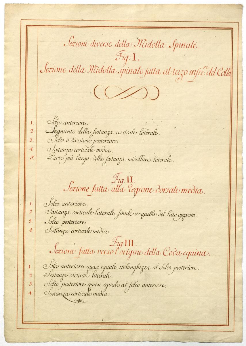 Der Text ist die ergänzende Beschreibung in italienischer Sprache zum anatomischen Wachsmodell des Hirnstammes.