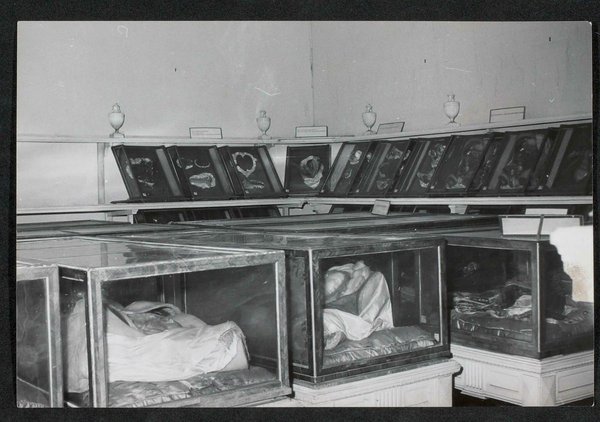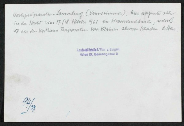 In der Nacht vom 17. auf den 18. Oktober 1961 ereignete sich ein Wasserdurchbruch, der 18 Vitrinen beschädigte. Fotografie: Landesbildstelle für Wien und Burgenland. Neg I 06/21