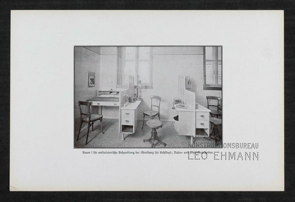 Die Fotografien wurden von Martin Peter Gerlach senior angefertigt. Das Konstruktionsbüro Leo Ehmann hat die gesamte medizinische Einrichtung des Spitals geplant und hergestellt.
