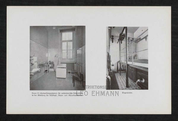 Die Fotografien wurden von Martin Peter Gerlach senior angefertigt. Das Konstruktionsbüro Leo Ehmann hat die gesamte medizinische Einrichtung des Spitals geplant und hergestellt.