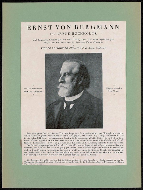 Die Biographie wurde von Arend Buchholtz verfasst, die Reklame bezieht sich auf die 4. revidierte Auflage.