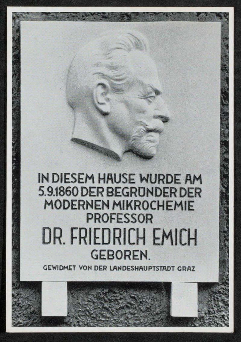 Die Tafel wurde von Wilhelm Gösser, Graz, angefertigt, die Karte bei Styria, Graz, verlegt. Rückseitig mit Grußworten von Frau oder Herrn Kindler-Emich, datiert auf den 14. Januar 1972, unterschrieben.
