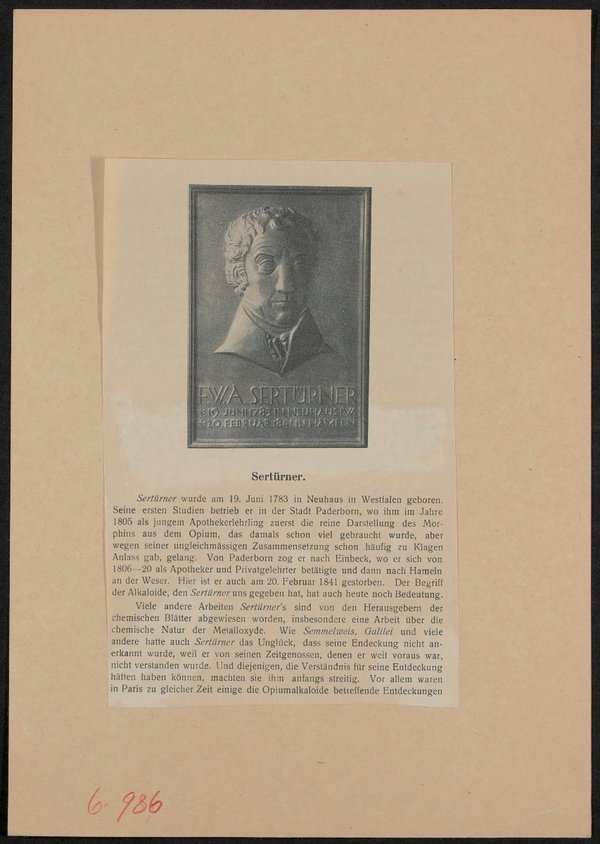 Teil der Abbildung ist auch ein doppelseitiger Artikel, der die Entdeckungen Sertürners thematisiert.