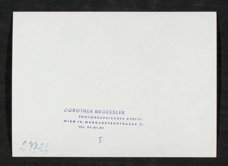 Die Fotografie wurde im Fotoatelier Dorothea Broessler, Wien, angefertigt.