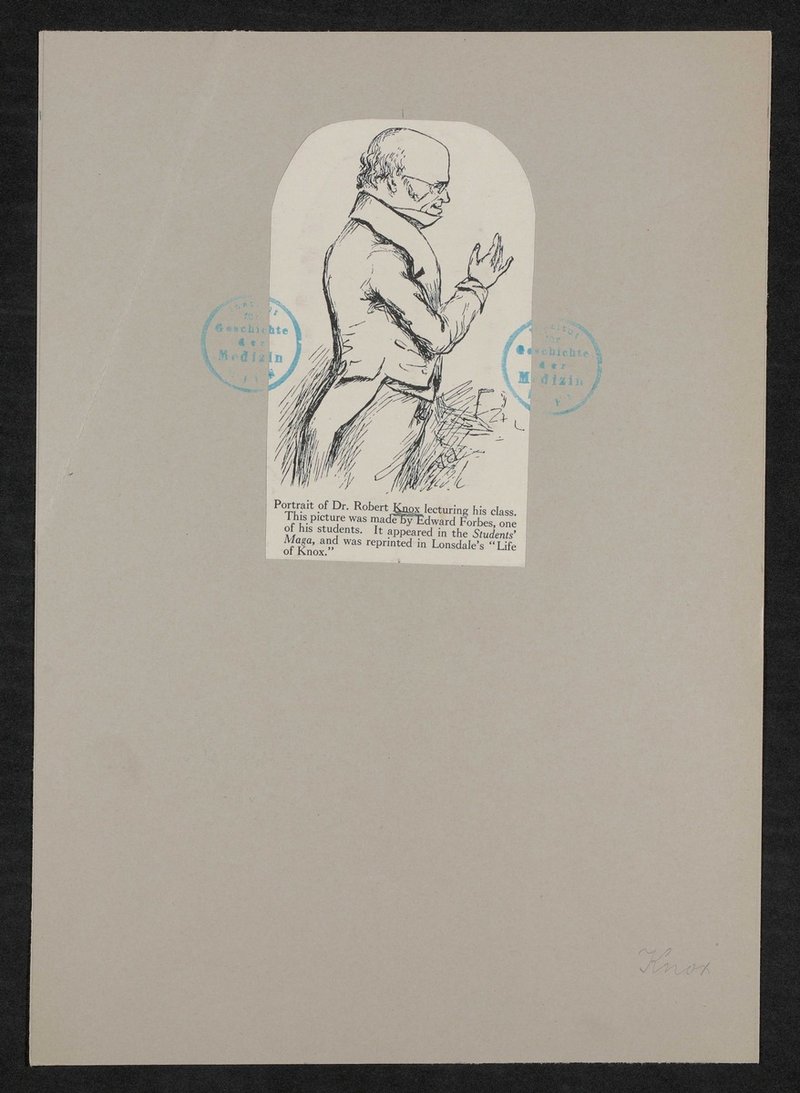 Das als Vorlage dienende Zeichnung stammte von Edward Forbes, einem Studenten des Abgebildeten. Vorderseitig mit zwei Stempeln des Instituts für Geschichte der Medizin, Wien, versehen.