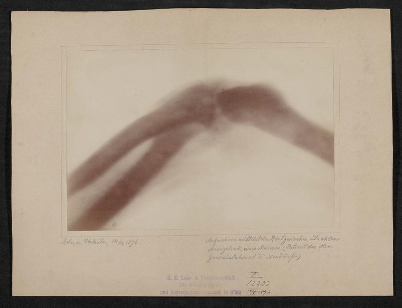 Die Aufnahme wurde von Josef Maria Eder und Eduard Valenta angefertigt. Vorderseitiger Stempel der K. K. Lehr- u. Versuchsanstalt für Photographie und Reproduktionsverfahren, Wien, handschriftliche Signierung V 12233 und Datierung 12 V 1896. Rückseitiger Stempel Otto Krumpel, Wien.