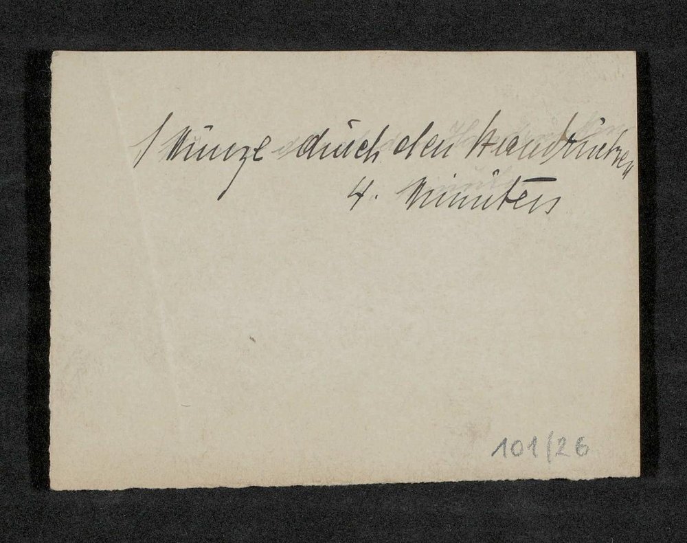 Laut beiliegendem, an Franz Exner adressiertem Briefumschlag wurde das Bild mit Hilfe einer Höhensonne gemacht und vier Sekunden belichtet. Vermutlich fertigte Nicolas Küdinger, Prof. Dr., München, die Aufnahme an. Zugehörig zu AS-6.044.