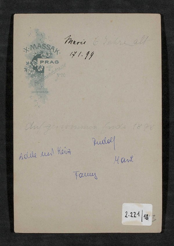 Die Fotografie ist von Franz Xaver Massak, Prag, angefertigt worden.