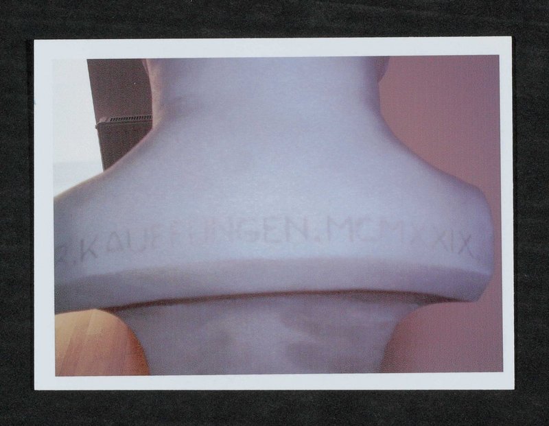 Auf der Fotografie ist die Rückseite der Büste mit der Signatur von Richard Kauffungen und der Jahreszahl 1929 zu sehen.